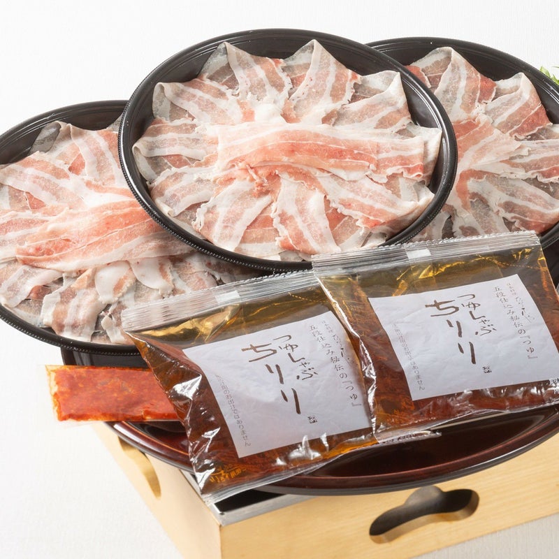 | 内容量 | 720g 丸皿入りバームクーヘン豚肉110g×3皿 特製つけだれ300cc×2袋 そば80g 柚子唐辛子10g |