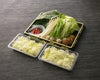 | 内容量 | 970g 丸皿入りバームクーヘン豚肉110g×3皿 特製つけだれ300cc×2袋 そば80g 柚子唐辛子10g 野菜盛り3人前付き |