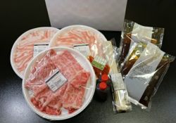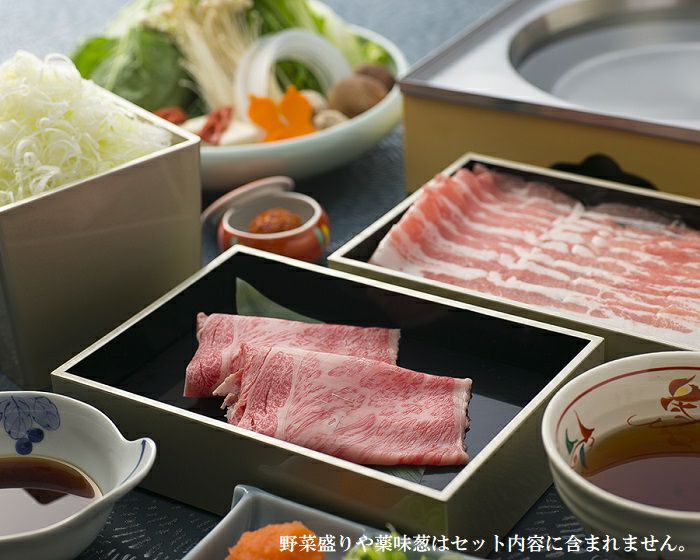 内容量 | 1280g 丸皿入り豚肉110g×3皿 近江牛スライス(肩ロース)140g 特製つけダレ300cc×2袋 ポン酢50cc×2 そば1束 柚子唐辛子10g |