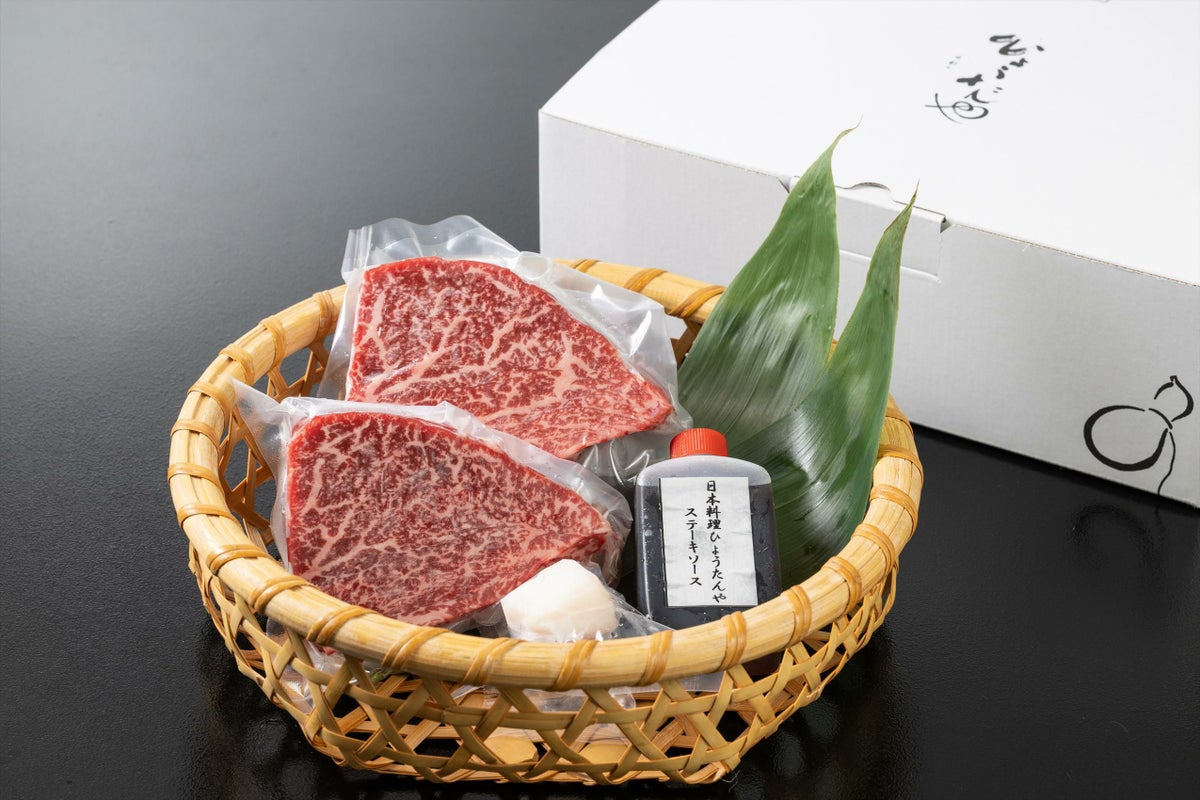 ひょうたんやが誇る近江牛A4〜A5ランクを、王道の味わい方でお楽しみいただけます。美しい霜降りに、独特の甘みとコクがある最高級部位のサーロインと、あっさり柔らかい食感で幅広い年齢層に好まれるフィレ、2種類の部位をご用意いたしました。どちらもひょうたんや特製のステーキソースでご堪能ください。芳醇な香りと上品な味わい、食べごたえのあるボリュームで、お祝い事にもぴったりです。